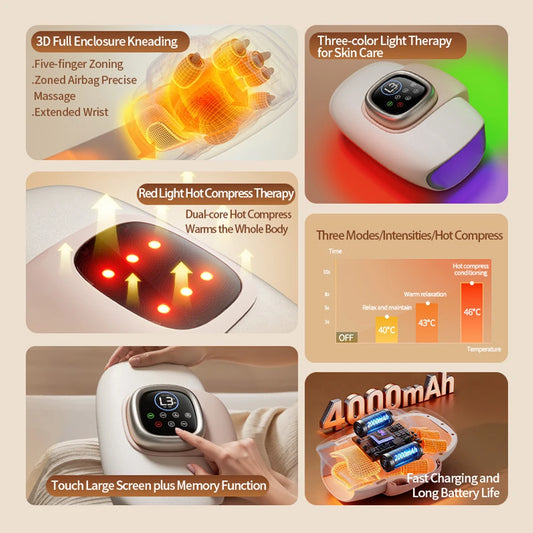 Electric Hand Massager Wrist Joint Numbness Airbag Massage Red Light Hot Compress Relieve Hand Pain Relax Hand Massage SPA Care